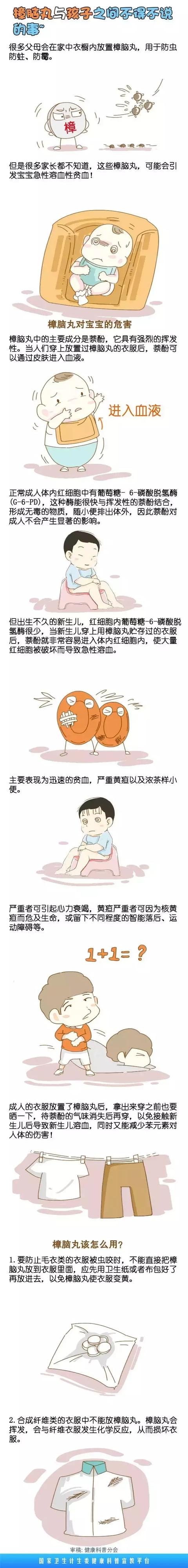 来源:KK健康漫画科普 [导读] 很多父母会在家中衣橱内放置樟脑丸,用于防虫、防蛀、防霉。但是很多家长都不知道,这些樟脑丸,可能会引发宝宝急性溶血性贫血!很多父母会在家中衣橱内放置樟脑丸,用于防虫、防蛀、防霉。但是很多家长都不知道,这些樟脑丸,可能会引发宝宝急性溶血性贫血!